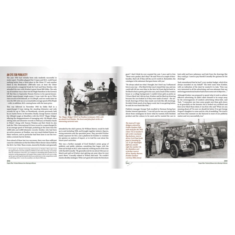 MG, the world’s most-loved make of sports car, was created in the 1920s by Cecil Kimber – invariably known as Kim. Rising above disability, with his energy, enthusiasm and vision, Kimber became a leading figure in the British motor industry. Initially placing sporty bodies on Morris chassis, within a few years he had built M.G. into the leading European manufacturer of sports cars with an impressive record of competition successes. He survived industrial upheaval only to fall victim to the venomous internal politics of M.G.’s parent company. Sacked from his high-profile job, he was preparing to bounce back when he lost his life in a needless accident. Respected businessman, wayward husband, fallible parent – Cecil Kimber was a man of surprising contrasts. Here for the first time is the colourful story of the man behind those famous initials, published to commemorate the hundredth anniversary of the first M.G.