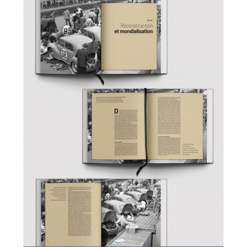 This luxurious book of more than 400 pages, imposing in size and carefully finished, is presented like an album of mostly unpublished photographs, arranged chronologically. These images bring to life a century of emotions and sporting exploits while recalling the myriad technological advances. Punctuating the whole are 5 notebooks annotating this story, showcased both by their colour and their format. The whole is graced with an elegant and airy layout that reproduces the intense rhythm so characteristic of this event.