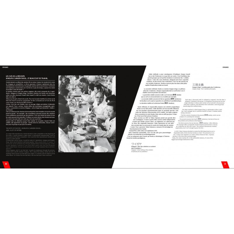 The first volume of Road to the red zone tells the Honda Type R story. This journey starts with the birth of Soichiro Honda, until the first Civic Turbo in 2015. All models have been driven and analysed to make you discover this wonderful family.