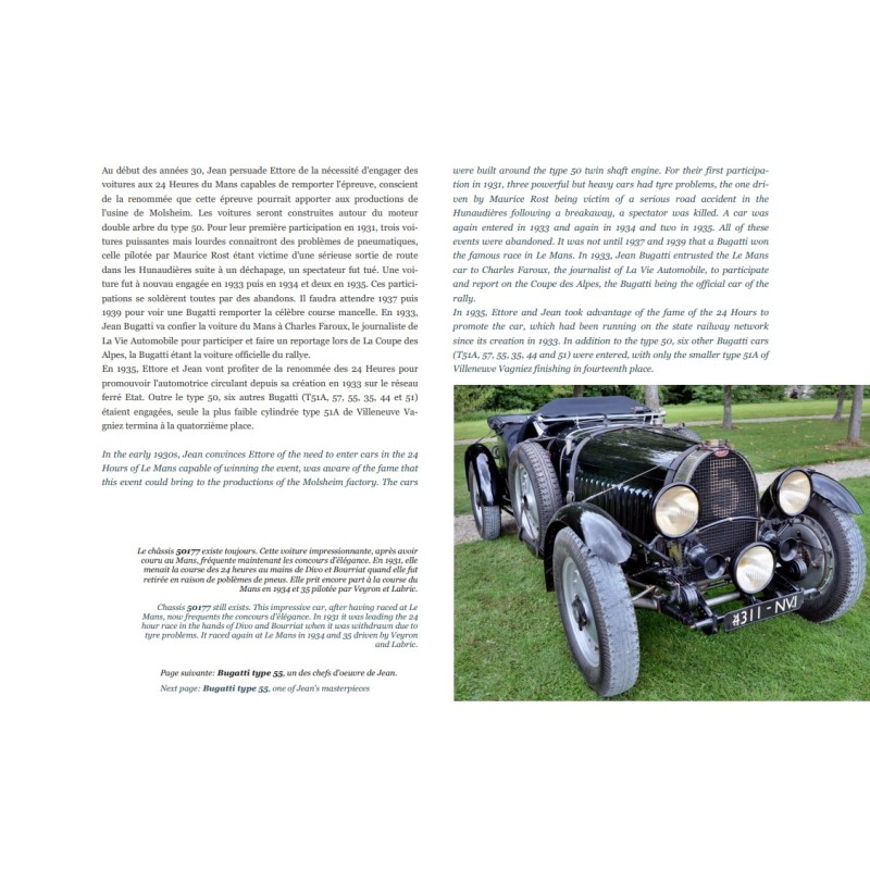 Who was Jean Bugatti? How was a young man under thirty able to take charge of a company that was almost bankrupt in a troubled period both in France and in Europe, all in the shadow of an artist father who only trusted his certainties? Jean was nevertheless the author of some of the greatest masterpieces of automobile creation. Unfortunately, he did not have the leisure to enjoy the life of a young designer admired by all the factory staff as well as by the Grand Prix drivers for very long, with the parties organized at the Hostellerie du Pur sang after the racing victories and evenings in the capital's cabarets. The crisis that occurred at the beginning of the 1930s marked the end of the Golden Age for Bugatti as for all French manufacturers and coachbuilders of exceptional cars.