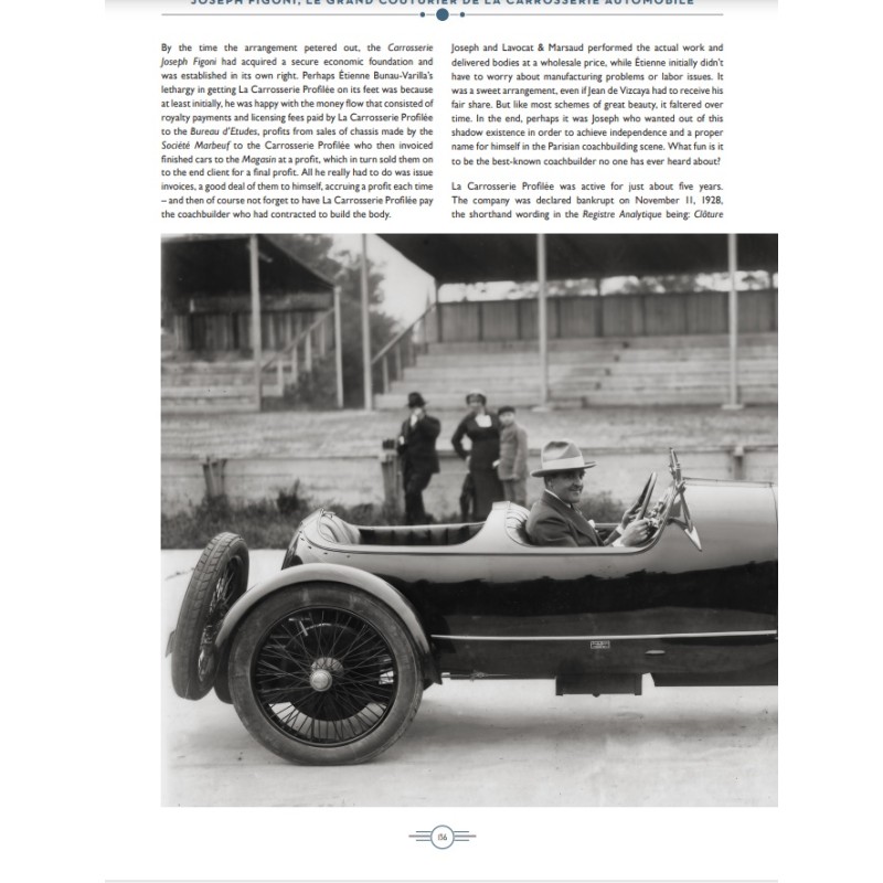 Brace yourself for the fascinating story about how the Carrosserie Joseph Figoni worked closely with Bugatti in Paris in the 1920s, as well as the first showings of Figoni coachwork at the Paris Salons and concours d’élégance. It is an absorbing account of how French luxury cars were built, sold and marketed in the City of Light before the tsunami of the Great Depression. Who the movers and shakers were, and the conflicts that arose when business interests clashed. Also explored is the Bugatti sales empire built by businessman Étienne Bunau-Varilla, an empire that for some crucial years regarded the Carrosserie Joseph Figoni as a favored coachbuilder, thereby putting Figoni on the map as a leading carrossier in Paris. But it was also an enterprise that grew to the point where Ettore Bugatti could no longer live with the power that Bunau-Varilla exerted over the factory in Alsace.