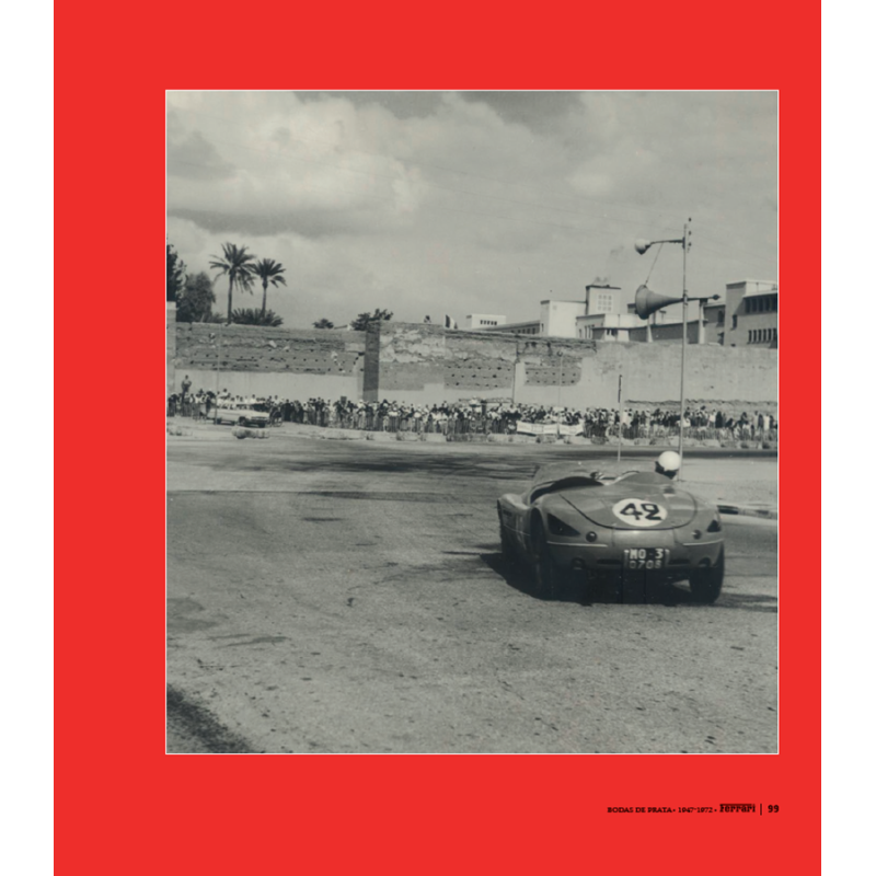 Como o próprio título indica, esta publicação tem como objetivo celebrar o 75º aniversário da Ferrari, focando mais na imagem do que na narrativa. O objetivo principal é descrever os primeiros 25 anos de sucessos e vitórias da marca nas corridas, num período que vai desde a sua fundação em 1947, até 1972, em que a marca Ferrari salta para uma notoriedade incrível e se torna um ícone de renome mundial. Tais sucessos também foram obtidos em Portugal, onde a marca, durante as décadas de cinquenta e sessenta, foi a vencedora indiscutível de muitas das corridas realizadas em solo português, não só por estrangeiros, mas também com pilotos portugueses, nos famosos circuitos como Boavista (Porto), Vila Real, Monsanto e Montes Claros (Lisboa), Cascais e Vila do Conde. Este livro também captura as imagens da Ferrari em Grandes Prêmios oficiais e não oficiais de Fórmula 1, focando também em carros esportivos e de resistência projetados para eventos famosos como “Mille Miglia”, proibida como corrida de rua desde 1957 e as prestigiosas 24 Horas de Le Mans, que competem desde 1923 – e que ainda hoje são organizadas com grande sucesso – sendo um marco de prestígio e publicidade para as marcas vencedoras. Da mesma forma, podemos apreciar imagens de Ferraris, muitas delas nunca vistas antes, seja de monopostos, seja Sport, em outros circuitos importantes nos quais a marca de “Cavallino Rampante” deu brilhantes performances.