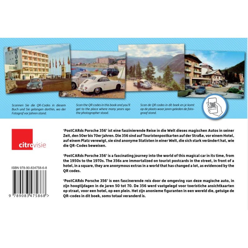 ‘PostCARds Porsche 356’ is a fascinating journey into the world of this magical car in its time, from the 1950s to the 1970s. The 356s are immortalized on tourist postcards in the street, in front of a hotel, in a square.