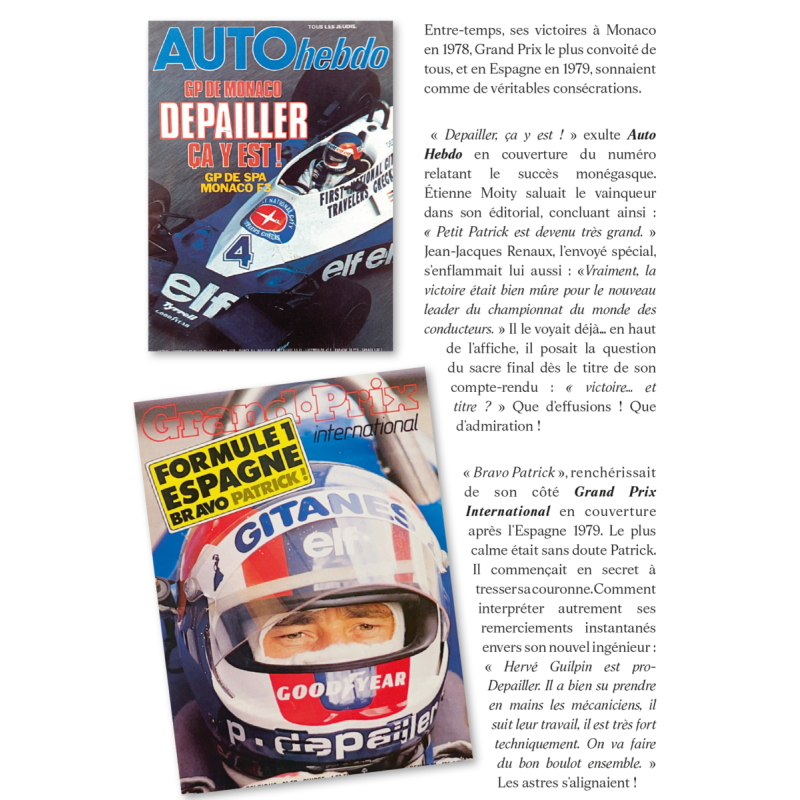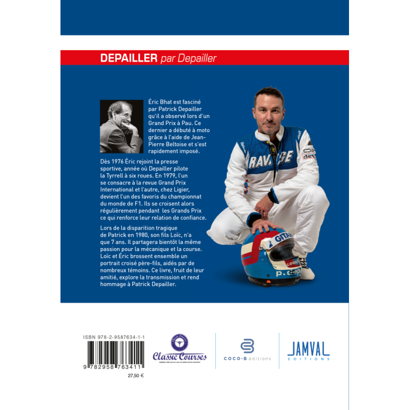 Lors de la disparition tragique de Patrick en 1980, son fils Loïc, n’a que 7 ans. Il partagera bientôt la même passion pour la mécanique et la course. Loïc et Éric brossent ensemble un portrait croisé père-fils, aidés par de nombreux témoins. Ce livre, fruit de leur amitié, explore la transmission et rend hommage à Patrick Depailler en 224 pages et 177 illustrations.