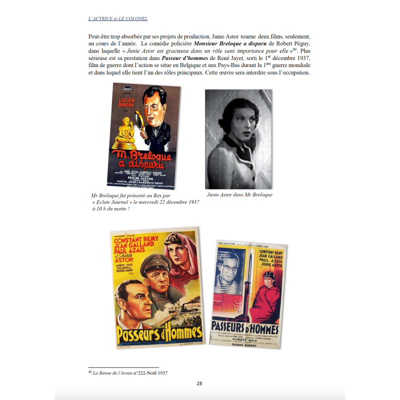 L’Actrice et le Colonel est une histoire de passion, d’amour, d’amitié et de courage. C’est un voyage dans le cinéma français depuis l’avant-guerre jusqu’aux années soixante. Elle s’appelait Rolande Risterucci, connue sous le nom de Junie Astor, élégante vedette des années 30. Vint la guerre et elle glissa peu à peu vers l’oubli. Lui s’appelait Jean Simon, connu plus tard dans le milieu de la course automobile sous le nom du Colonel John Simone.
