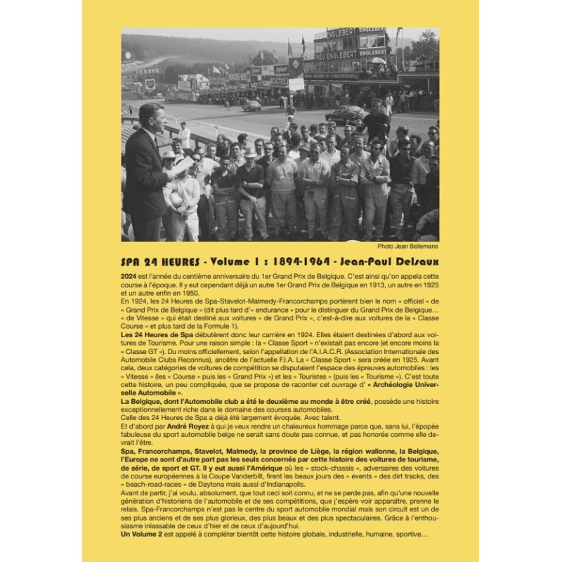 Avant de partir, j’ai voulu, absolument, que tout ceci soit connu, et ne se perde pas, afin qu’une nouvelle génération d’historiens de l’automobile et de ses compétitions, que j’espère voir apparaître, prenne le relais. Spa-Francorchamps n’est pas le centre du sport automobile mondial mais son circuit est un de ses plus anciens et de ses plus glorieux, des plus beaux et des plus spectaculaires. Grâce à l’enthousiasme inlassable de ceux d’hier et de ceux d’aujourd’hui.