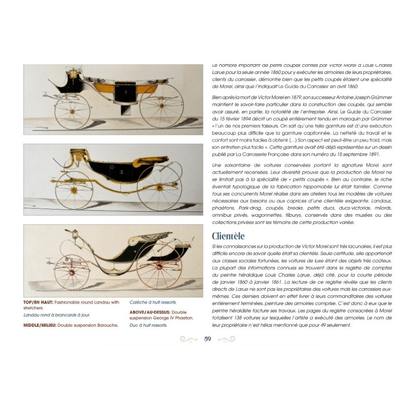 This book introduces the reader to many previously unpublished documents and illustrations of exceptional carriages and cars that were the pride of their owners both in France and overseas and describes their importance in the day-to-day life of Parisian high society. Mention is also made of the many high-quality suppliers who contributed to the manufacture of the carriages including Hermès, Louis Vuitton, and Boyriven. The book is written in both English and French.