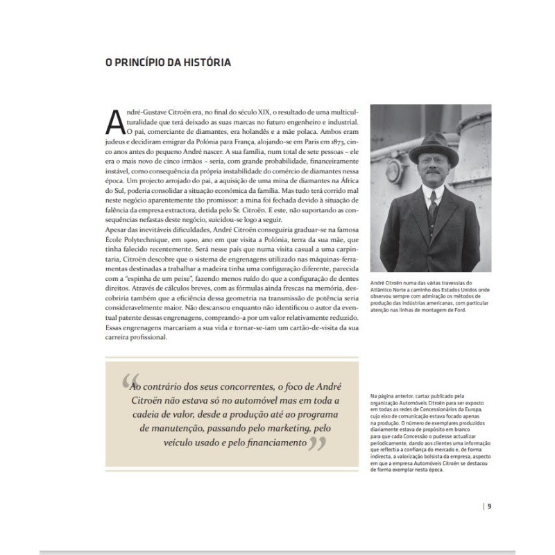Bien que je ne lise ni ne parle couramment le portugais, j'ai acquis le livre car je collectionne toute la littérature relative à Citroën. Mes bonnes connaissances du français et rudimentaires de l'italien m'ont permis toutefois de saisir grossièrement le sens des textes. Le livre est très bien présenté et contient de belles photos pour la plupart inédites dans les nombreux ouvrages français sur Citroën. C'est un livre incontournable pour tout passionné de la marque.