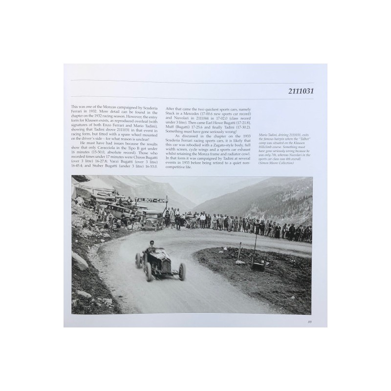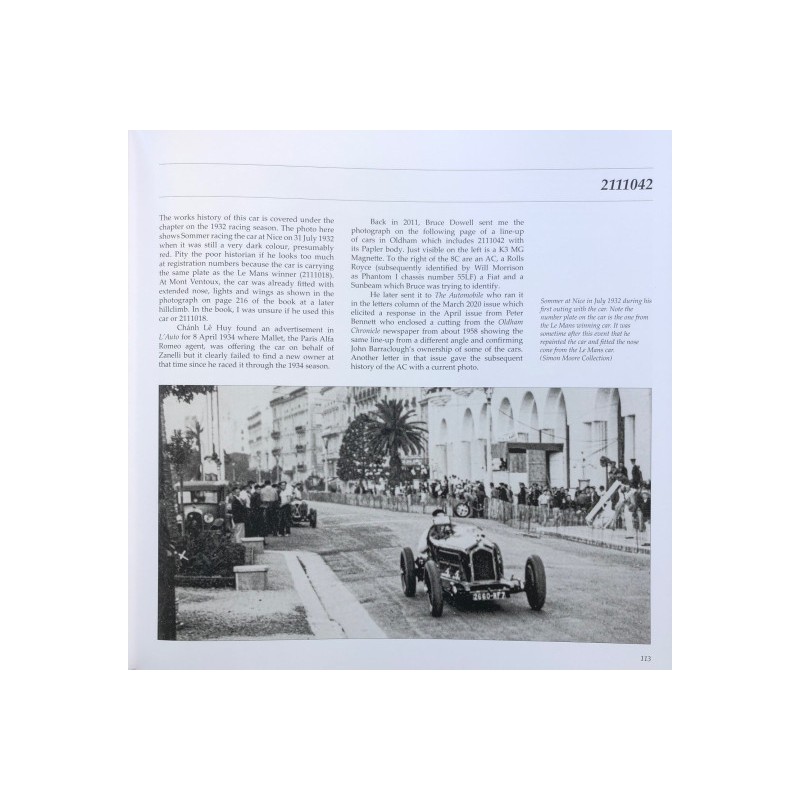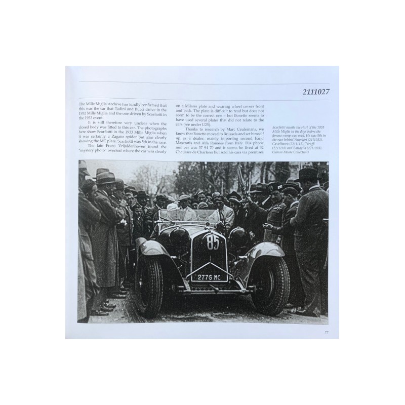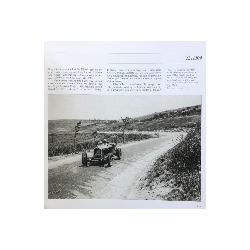 In some ways it seems less than twenty-one years since The Legendary 2.3 appeared but in other ways many more! For example, back in 1999, there was no massive data base of information to access via Google and few people were on email. Almost no-one had their own scanner, so all original photographs had to be sent to a professional pre- press shop in Canada. A different world! As time passed, Simon received more and more enquiries like “Do you know anything more about chassis number X?” so, after twenty odd years, it was time to do something. A completely new edition was quickly ruled out, so what you have is an update – primarily on 8C2300s but also a little on 8C2900s and even a handful of pages about the Grand Prix cars. You will need to read this Addendum volume in conjunction with the originals which are referred to frequently. It is not a comprehensive book in its own right – it is a reference book to be read with the other books.