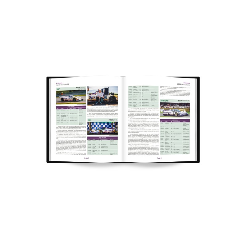 The final section is a meticulously-researched history of all 32 TWR-Jaguar XJR chassis that saw track action, with extensive competition and ownership records and history, assembled with the input of the foremost collectors and preparers of the cars today.