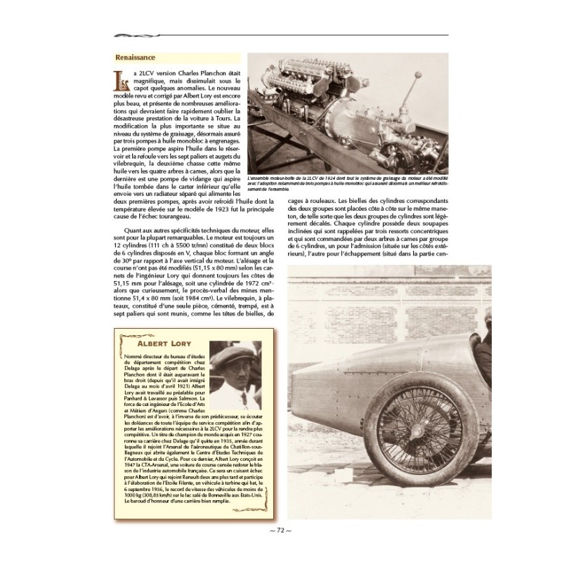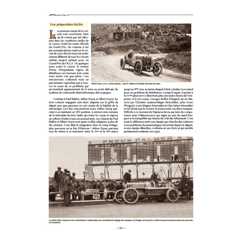 Si le XIXème Grand Prix de l’A.C.F. (et IIème Grand Prix d’Europe), disputé le 3 août 1924 à Lyon, est reconnu pour être la plus farouche et la plus passionnante opposition entre les moteurs suralimentés et les moteurs atmosphériques, c’est avant tout la première apparition en compétition de l’Alfa Romeo P2, de la Schmid Grand Prix sans soupape, de la Bugatti type 35 et, d’une certaine manière, de la Delage 2LCV. Ce livre retrace tout l’historique des marques Bugatti et Delage en compétition, toute la genèse de la Bugatti type 35 et de la Delage 2LCV (avec de nombreux détails, documents et spécificités techniques), sans oublier celle de leurs concurrentes, les Alfa Romeo, Sunbeam, Fiat, Miller et Schmid.