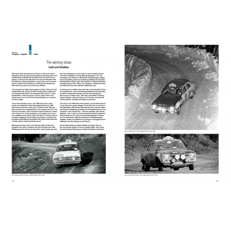 This 264-page book summarizes the complete rally history of the Mk1 and Mk2 Escorts from the first concept in 1967 to the World Championship title of 1981. Author John Davenport - the first to co-drive in the Escort at its rally debut fifty years ago - spoke to two dozen contemporary witnesses and has summarized the history of this car more comprehensively and vividly than anyone before. It describes the development in chronological order, but lightened by interesting comments and anecdotes. The texts are accompanied by more than 500 partly known and partly never-before-seen photos. They show the Escort in the legendary Boreham workshop, during test drives and, above all, in action in a wide variety of liveries.