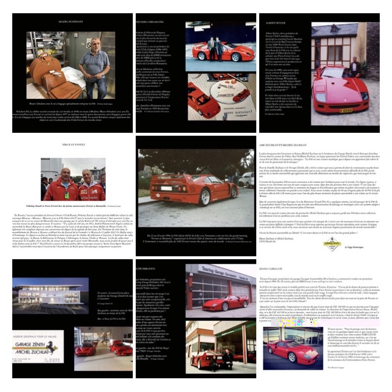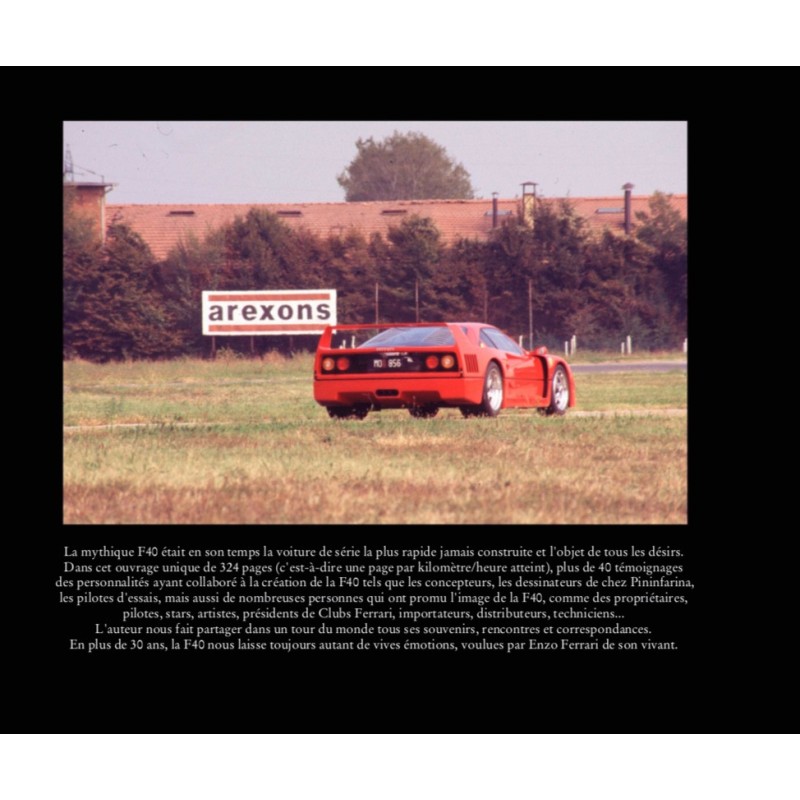 Dans cet ouvrage unique de 324 pages (c'est-à-dire une page par kilomètre/heure atteint), plus de 40 témoignages des personnalités ayant collaboré à la création de la F40 tels que les concepteurs, les dessinateurs de chez Pininfarina, les pilotes d'essais, mais aussi de nombreuses personnes qui ont promu l'image de la F40, comme des propriétaires, pilotes, artistes, présidents de Clubs Ferrari, importateurs, distributeurs, techniciens…