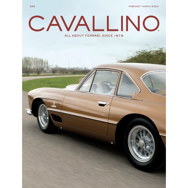 The cover car of #259 is the 1962 Ferrari 250 GT “SWB” Coupé Aerodinamico s/n 3615 GT, a Superamerica styled body paired with a 3-liter engine, originally delivered to the son-in-law of Mrs. Lancia. The car has an intense history, featuring numerous owners, color changes, and the loss and recovery of its original engine. It will be shown at Palm Beach Cavallino Classic 2024.
