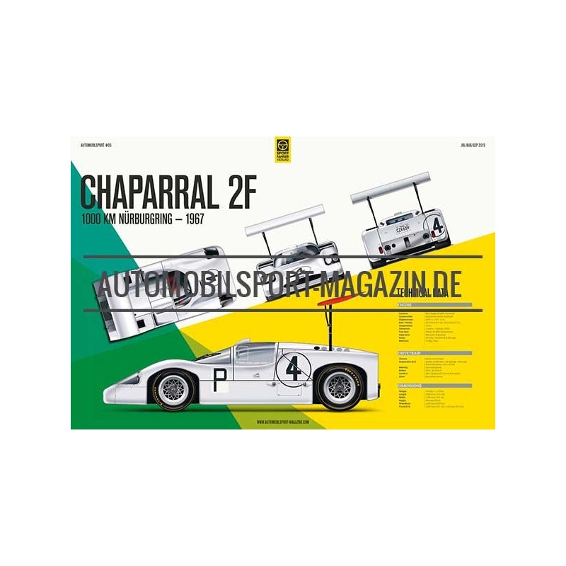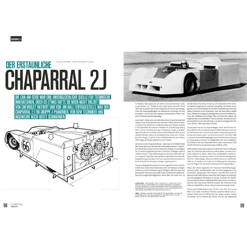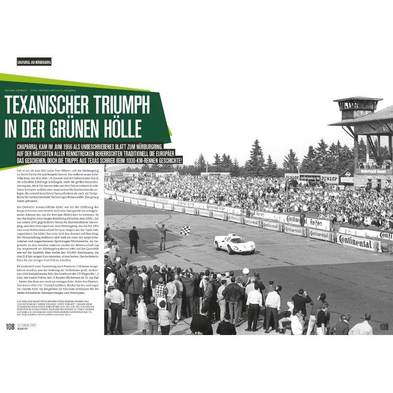 Jim Hall – who scored three championship points during his 1963 Formula 1 campaign, two of which came at the Nürburgring – set up Chaparral more than 50 years ago. The revolutionary 1965 car won 16 of its 21 starts that year. Chaparral scored unforgettable wins at the Sebring 12 Hours and the 500-km race at Bridgehampton, both races part of the World Sportscar Championship, and in the sensational 1966 Nürburgring 1000km, where Phil Hill and Joakim Bonnier dominated in the Chaparral 2D. You can read all about Jim Hall and his ground-breaking innovations in this issue.
