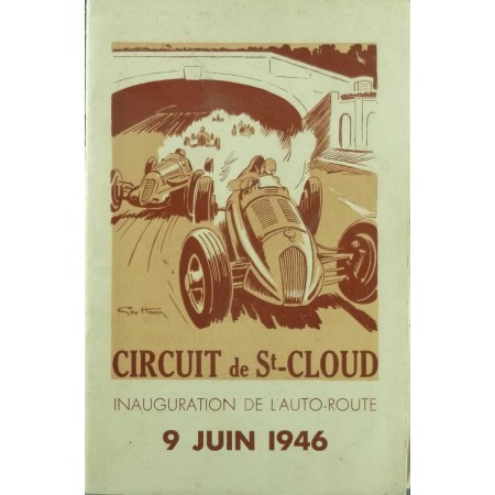 Le programme du circuit de St Cloud, courses Grand Prix organisées à l'occasion de l'inauguration de l'auto-route, le 9 juin 1946 .