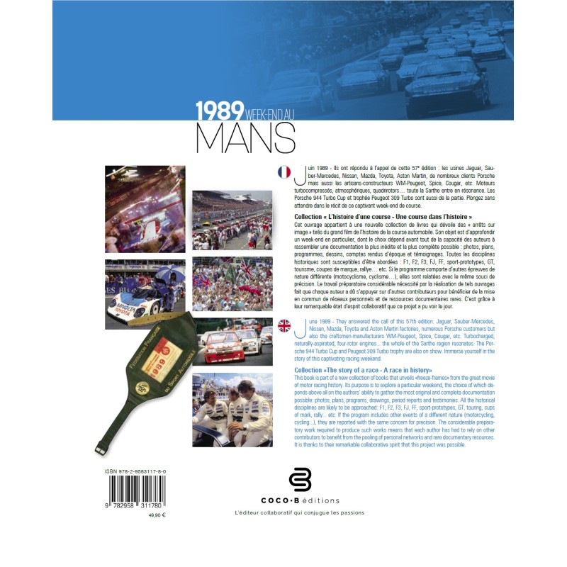 Juin 1989 - Ils ont répondu à l’appel de cette 57e édition des 24 Heures : les usines Jaguar, Sauber-Mercedes, Nissan, Mazda, Toyota, Aston Martin, de nombreux clients Porsche mais aussi les artisans-constructeurs WM-Peugeot, Spice, Cougar, etc. Moteurs turbocompressés, atmosphériques, quadrirotors… toute la Sarthe entre en résonance. Les Porsche 944 Turbo Cup et trophée Peugeot 309 Turbo sont aussi de la partie. Plongez sans attendre dans le récit de ce captivant week-end de course. Cet ouvrage appartient à une nouvelle collection de livres qui dévoile des "arrêts sur image" tirés du grand film de l’histoire de la course automobile.