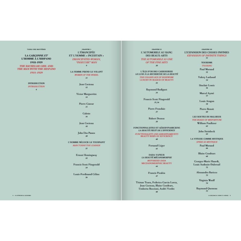 Anthologie de Proust à Houellebecq / Fitzgerald, Céline, Woolf, Morand, Steinbeck, Cendrars… Après la Première Guerre mondiale, la liberté intellectuelle apportée par les dadaïstes et les surréalistes n’affecte pas les industriels de l’automobile et les artisans décorateurs. La production des uns, les œuvres des autres sont conçues pour un public qui réagit follement à la paix retrouvée. La Garçonne, délivrée des tabous sociaux et moraux, mène sa vie tambour battant et l’Homme à l’Hispano, une vie toute aussi ardente, mais secrètement contenue en province. Roger Nimier résume : « Les libertés immédiates s’appelaient les cheveux courts et les amants au grand jour. » La clientèle veut du nouveau. Le modern style ne correspond plus à la mentalité. Les artistes décorateurs abordent la ligne droite, ils y retrouvent l’automobile. Observateur perspicace de l’époque, Pierre Gascar écrit : « Objet polyvalent, mais dotant toujours celui qui le possède d’une mobilité souveraine, l’automobile ouvre ainsi un vaste domaine romanesque », dans lequel nombre d’écrivains s’engouffrent et analysent les comportements des acteurs et les mœurs d’une société nouvelle de privilégiés. Proust, Mirbeau et le poète Marinetti avaient dominé la production littéraire qui utilisait l’automobile comme révélateur des comportements et de la société. Fitzgerald, Hemingway et Morand les égalent durant les Années folles.