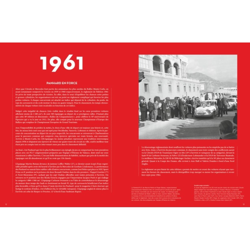 Cet ouvrage, consacré essentiellement à l’âge d’or du Monte-Carlo de 1961 à 1986, dévoile un pan fascinant de l’histoire de ce rallye mythique, sa transformation et de la progression technique des voitures engagées, à travers 250 magnifiques photographies qui témoignent de tous les aléas qu’il fallait maîtriser pour remporter la victoire.