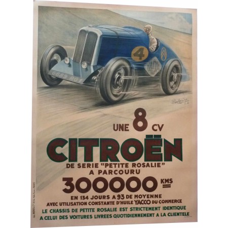 RARE affiche originale "Citroën Rosalie des records" de Pierre Louys 1933