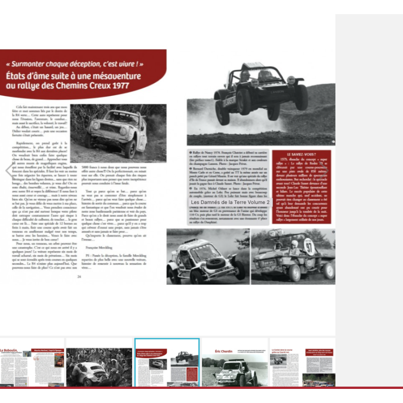 Les Damnés de la Terre, tome 2, vous propose de nous souvenir, ou de découvrir le monde des rallyes tout terrain à ses débuts jusqu’ à l'ère actuelle : une remontée dans le temps forte en émotions, à l'odeur de terre brûlée sur les pots d'échappement et d'huile de moteur... Découvrez l'esprit de cette discipline française trop méconnue grâce aux nombreuses anecdotes jusque-là confidentielles. Un livre pour ne pas oublier la passion dévorante du monde amateur