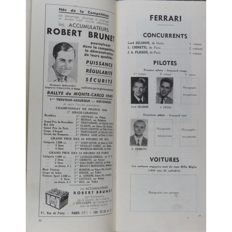Référence : LK53823Programme officiel des 24 heures du Mans 1949. Liste des voitures vérifiées incluse.Bon état.
