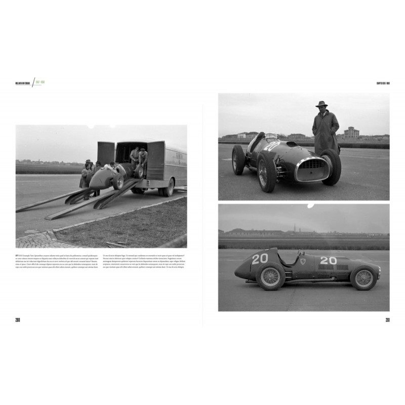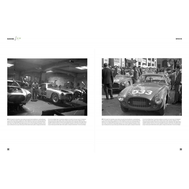 In this high-quality illustrated book are summarised, on about 360 pages, Millanta's view of Ferrari in the early years 1947-1952. Rare and very private photographs from the factory premises, from the construction of the cars, test drives and races give an unprecedented insight into the early years of the Scuderia and Enzo Ferrari's work.