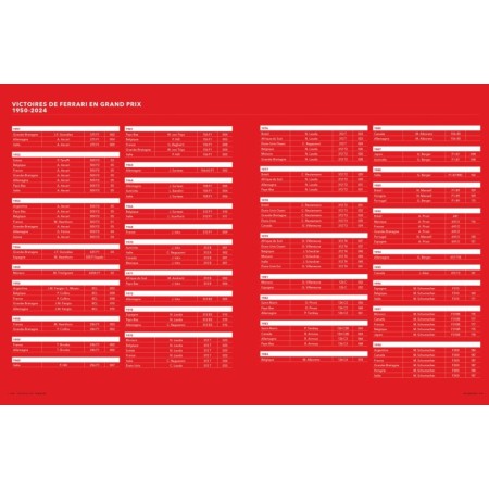 Chaque type, présenté de manière chronologique et illustré par des documents d’époque ou par des photos de pièces de collection, fait l’objet d’une description précise rassemblant les principales caractéristiques techniques, les chiffres de production et l’indication des numéros de châssis. L’évolution du style et du design des modèles reçoit un éclairage particulièrement avisé sous la plume de l’historien Serge Bellu qui aura consacré de nombreuses années de recherches pour documenter cet ouvrage monumental. Un index alphabétique de tous les modèles ainsi qu’un palmarès complet des victoires de Ferrari dans les épreuves de course automobile comptant pour les championnats du monde sont publiés en annexe à la fin du livre.