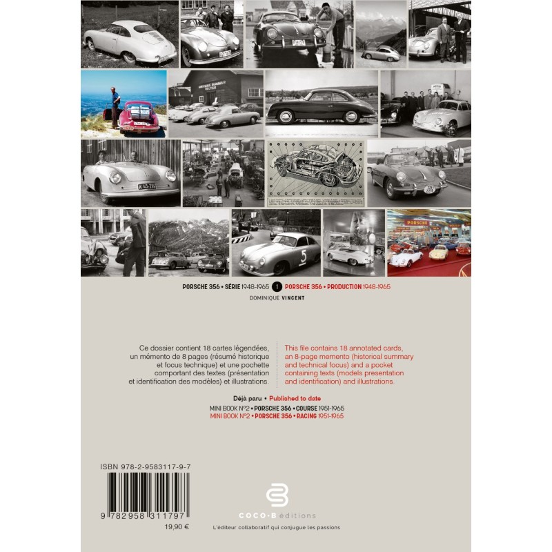 Référence : LN06006Ce mini livre sur les Porsche 356 de série contient 18 cartes légendées, un mémento de 8 pages (résumé historique et focus technique) et une pochette comportant des textes (présentation et identification des modèles) et illustrations.