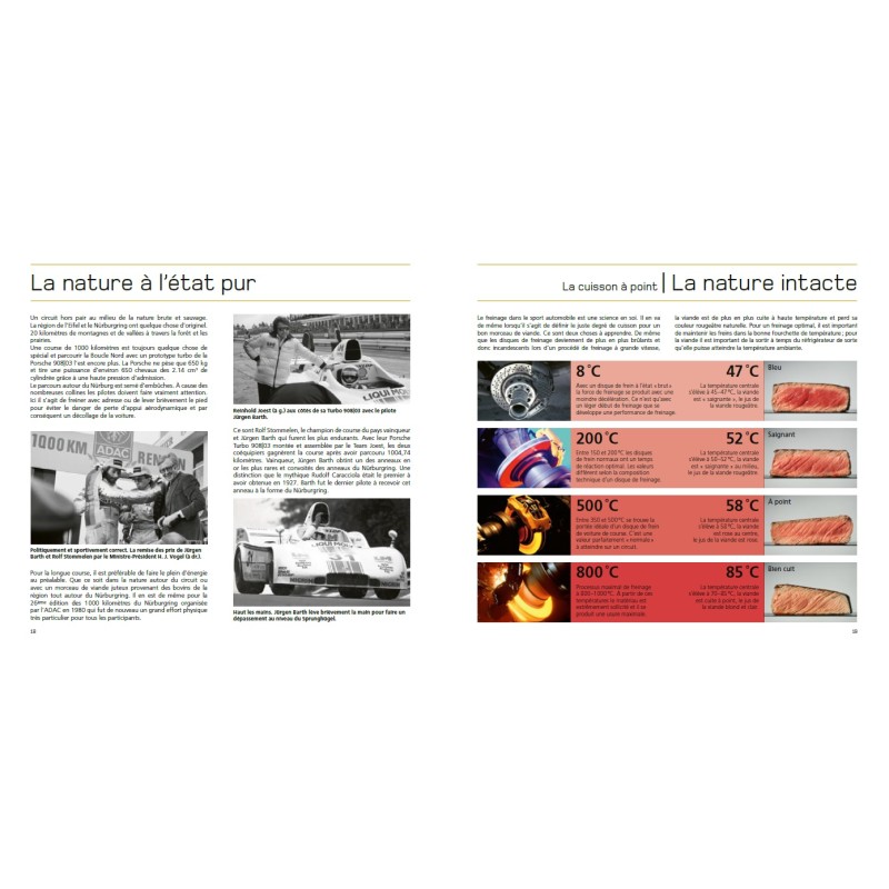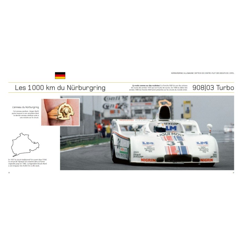 Reconnu dans le monde entier comme pilote automobile d'exception et auteur spécialisé autour de la légendaire marque Porsche, Jürgen Barth dépasse largement ses victoires sur la piste. Cet ingénieur passionné ne se contente pas de maitriser les culasses des moteurs : il plonge avec autant d‘enthousiasme dans les marmites des cuisines régionales. Au fil de ses voyages, il a collecté et revisité des recettes traditionnelles avec la précision et l‘inventivité qui font sa signature. Le résultat ? Une aventure unique en 24 étapes qui marie gastronomie et légendes de l‘automobile. Depuis Le Mans jusqu‘à Daytona, en passant par le Nürburgring ou la mythique Targa Florio, chaque page vous transporte dans un univers où la performance rencontre le plaisir. À bord des modèles les plus emblématiques de Porsche, découvrez des anecdotes captivantes et des recettes savoureuses qui raviront les fans de Porsche et les amateurs de bonne cuisine.
