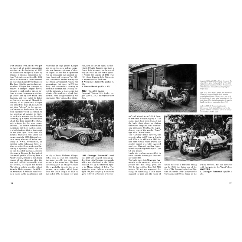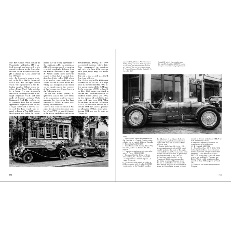 Seven Chapters cover the various Maserati Tipo 26 models, 26, 26B, 26MM, 26B MM, 26R, 26C, 26C MM and the Tipo 26M and 26MM, fitted with 2.5, 2,8 and 3-litre engines.